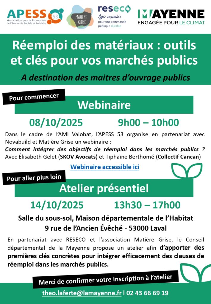 - A destination des maîtres d’ouvrage publics – atelier réservé aux structures de la Mayenne