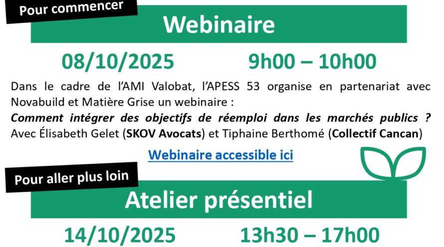 Atelier Réemploi des matériaux : outils et clés pour vos marchés publics Dans le cadre… +