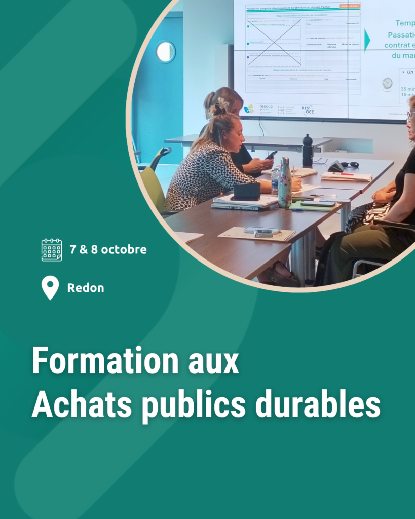 RESECO propose une formation gratuite de 2 jours sur les achats publics durables à Redon le 7 & 8 octobre 2026.